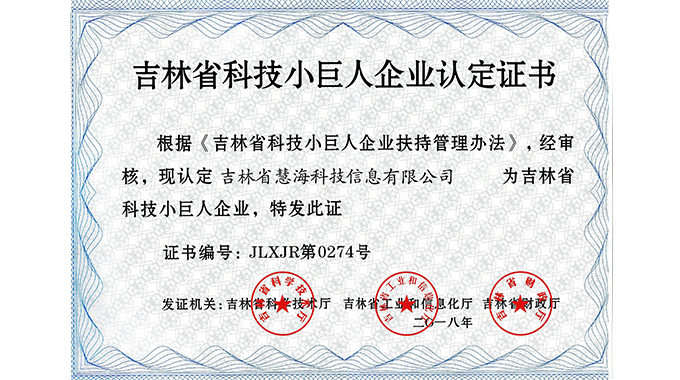 吉林省科技小巨人企業(yè)認定證書